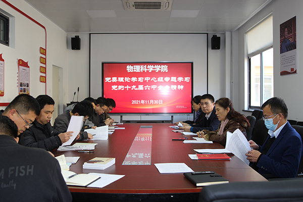 11月30日下午,胜游体育(SYsports)官方网站入口在博逸楼401会议室举行党委理论学习中心组(扩大)理论学习会,专题学习党的十九届六中全会精神。学院党政领导李升学、滕冰、郝伟、龙云泽,党委组织员王志琴,院长助理以及其他党委委员、党支部书记、辅导员参加学习。会议由院党委书记李升学院主持。