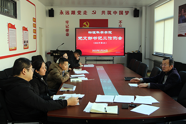 2月24日下午,胜游体育(SYsports)官方网站入口在博逸楼401会议室召开2022年度党支部书记第2次工作例会。院党委书记郝伟主持会议,学院部分党委班子成员、各党支部书记参加会议。