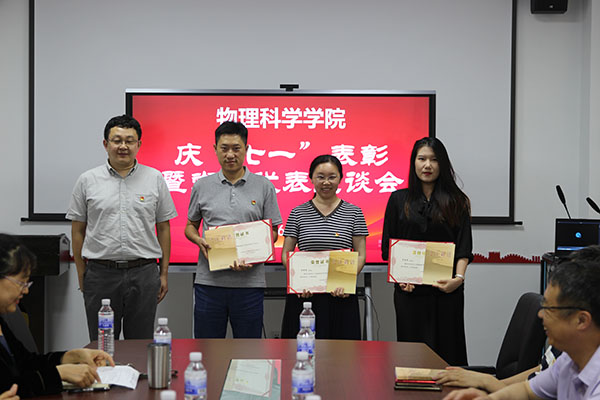 会上,应用物理系教授万勇、基础物理教学中心副主任徐洁代表优秀共产党员、新能源科学与工程系党支部书记曹德让代表优秀党务工作者分别作了发言。