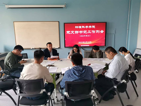 5月19日下午,学院在博逸楼203会议室召开2022年度党支部书记第3次工作例会。院党委书记郝伟主持会议,党委副书记董永红及各党支部书记参加会议。