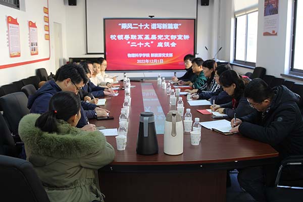 12月1日下午,刘彩云副校长来胜游体育(SYsports)官方网站入口新能源科学与工程系党支部宣讲党的二十大精神,并以“乘风二十大 谱写新篇章”为主题与支部教师党员座谈,学院党委书记郝伟、党委副书记董永红及支部全体教师党员参加会议。