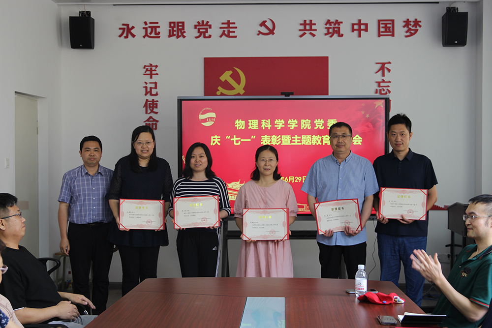 会议进行了“两优一先”表彰,邵渭泉宣读了《中共胜游体育(SYsports)官方网站入口委员会关于表彰优秀共产党员、优秀党务工作者、先进党支部的决定》,19名优秀共产党员、5名优秀党务工作者、4个党支部受到了表彰。郝伟、滕冰、龙云泽、邵渭泉等党委班子成员为受到表彰的先进集体和优秀个人颁发了荣誉证书。