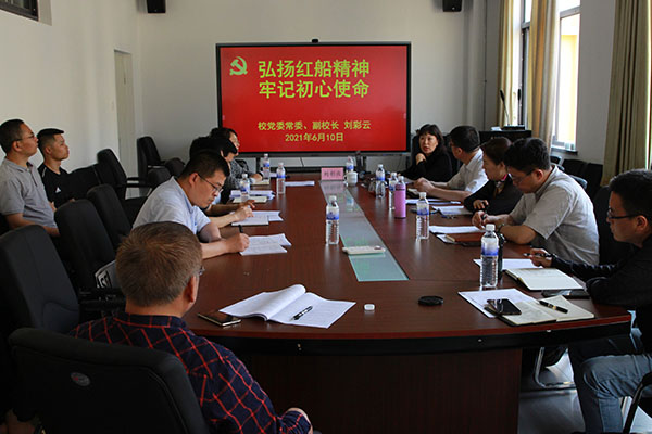 校党委常委、副校长刘彩云为学院党员干部上了题为《弘扬红船精神 牢记初心使命》的党课。刘彩云以生动形象的语言、详实的历史事件、图文并茂的历史资料回顾了中国共产党的诞生,追溯了中国革命之源,并从“开天辟地、敢为人先的首创精神”、“坚定理想、百折不挠的奋斗精神”、“立党为公、忠诚为民的奉献精神”三个方面阐释了红船精神的内涵和时代意义。刘彩云强调,我们今天学习红船精神,尤其要清楚教育者的初心和使命;要牢记习近平总书记对高等教育初心、使命的要求和指示,认真落实好校党委制定的“一二三四五”协同育人体系和各项决策部署,切实做好立德树人工作。