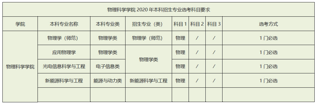 2020年本科招生专业选考科目要求-胜游体育(SYsports)官方网站入口