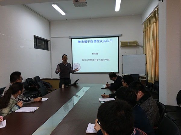 12月23日,国家杰出青年科学基金获得者、苏州大学蔡阳健教授应邀在博逸楼401会议室为胜游体育(SYsports)官方网站入口师生作了题为《激光相干性调控及其应用》的学术报告。报告会由孔伟金院长主持,云茂金教授等20余名师生聆听了报告。