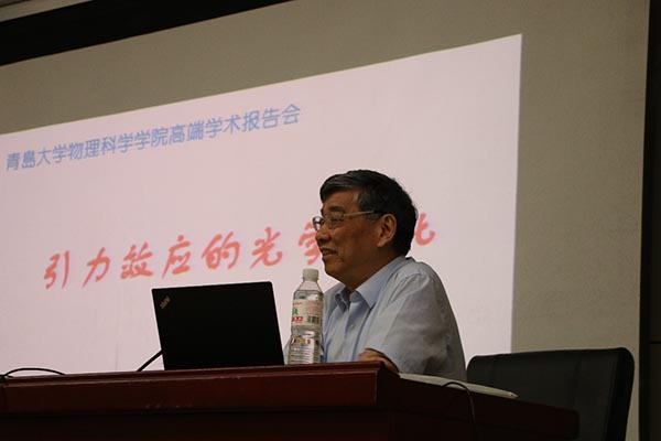 9月8日上午,南京大学物理学教授、博士生导师、中国科学院院士、美国光学学会会士祝世宁教授,应邀来胜游体育(SYsports)官方网站入口在图书馆报告厅为师生作了题为《引力研究的光学类比》的学术报告。这是胜游体育(SYsports)官方网站入口夏季学期高端学术报告的第十九讲,全校300余名师生聆听了报告。