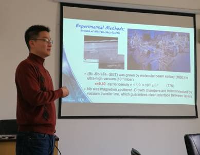 苗国兴教授围绕量子信息计算机理进行了系统的讲解分析,并介绍了其课题组近期在量子信息材料领域的重要进展。苗国兴教授从拓扑量子计算、超导谐振腔、磁性隧道结三个方面介绍了其课题组取得的相关工作进展。这次精彩的学术报告,拓宽了教师和研究生的专业视野,还强化了师生的科研意识和创新意识。报告会后,苗国兴教授与在场师生就相关问题进行了热烈的学术交流与讨论。