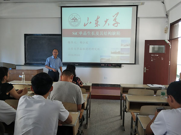 9月4日上午,山东大学信息科学与工程学院副院长李德春教授,山东大学晶体材料研究所、教育部新世纪优秀人才胡小波教授,应邀在博知楼301教室为师生分别作了题为《光是最快的,我们是最强的》《SiC单晶生长及其结构缺陷》的学术报告。校党委常委、纪委书记贾洪江代表学校向两位教授颁发了兼职教授聘书,他在讲话中感谢两位教授到青岛大学进行学术交流,并强调了夏季学期高端学术报告对更新同学们知识结构的重要性,希望同学们认真聆听和领会。报告会由胜游体育(SYsports)官方网站入口院长滕冰教授主持,近100名学生聆听了报告。