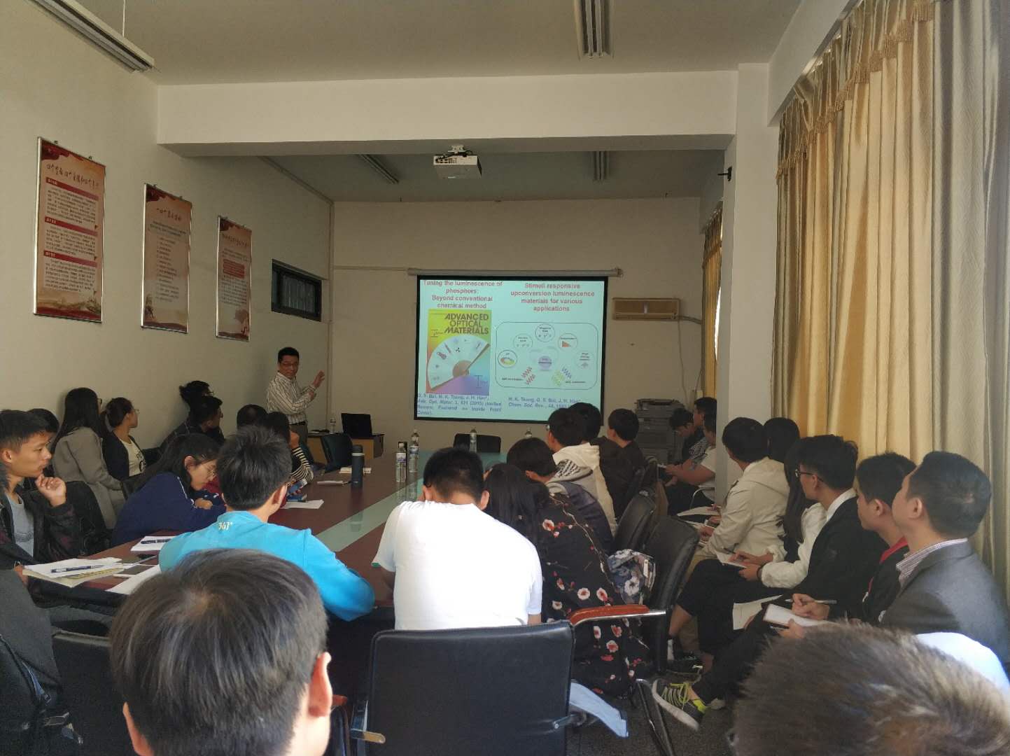 10月18日上午,香港理工大学应用物理学系郝建华教授应邀来胜游体育(SYsports)官方网站入口,为师生作了题为《先进材料和器件中的发光离子》的学术报告。报告会由胜游体育(SYsports)官方网站入口院长滕冰主持。