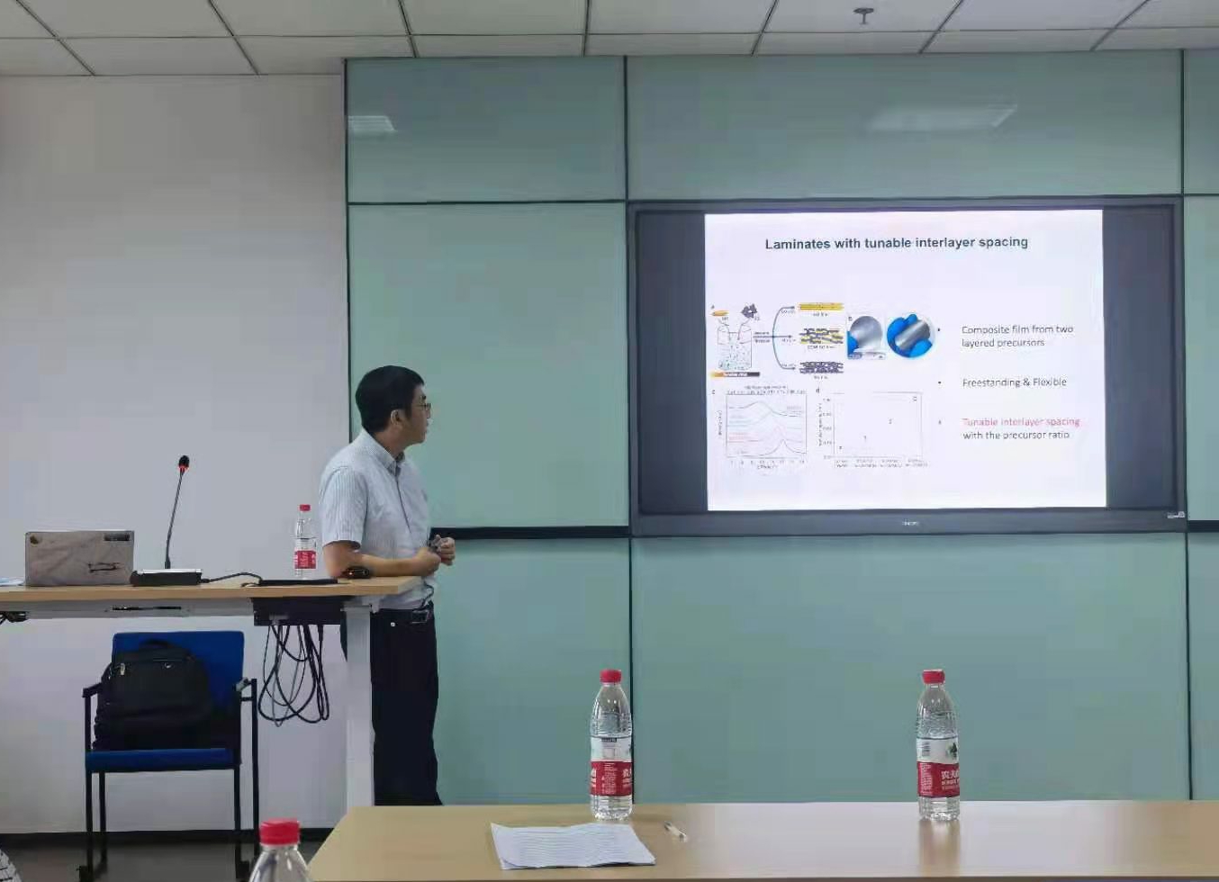在报告中,李峰研究员介绍了碳材料在电化学体系中的作用,重点关注了碳材料的孔结构及表面状态等对于电化学电容器的电化学过程影响规律;碳材料作为锂硫电池基体、夹层等的作用规律;碳材料对于电化学反应动力学过程的影响及在特种电池的研究进展。报告最后,李峰研究员与全体师生进行了热烈而深入的交流,并解答了老师们和同学们提出的相关问题。