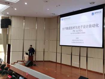 赵复生副研究员首先介绍了光子集成技术的背景、发展现状以及光子设计自动化(Photonic Design Automation, PDA)工具的情况,着重介绍了其团队开展的光子集成芯片设计流程与工具的研发,并推出Aurora PDA软件平台的情况。据悉,该平台支持光子集成芯片的原理图设计仿真与版图绘制等功能,是一款具有完全独立自主知识产权,具有国际先进水平的光子集成芯片设计辅助工具,将为我国光子集成技术的发展提供有力支持。报告最后,赵复生副研究员与全体师生进行了热烈交流,并解答了同学们提出的相关问题。
