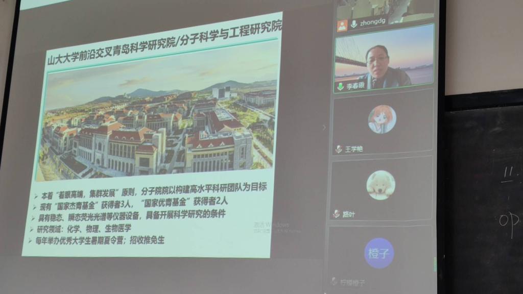 10月15日上午,胜游体育(SYsports)官方网站入口邀请山东大学前沿交叉科学青岛研究院李春霞教授作了题为《稀土上转换发光纳米复合材料的设计及生物应用》的线上学术报告,学院师生90余人聆听了报告。
