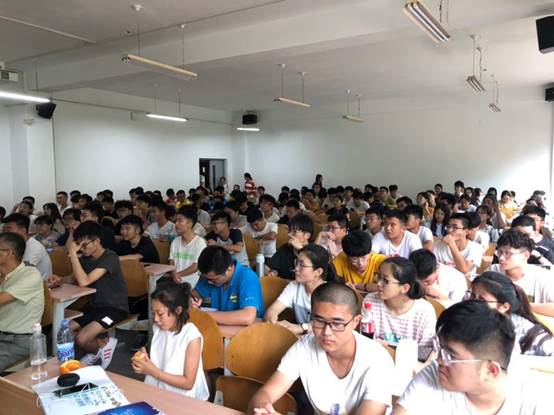 在报告中,席鹏介绍了分辨率的概念以及提高分辨率的办法。众所周知,超分辨显微成像极大地推动了生命科学的研究,被授予2014年诺贝尔化学奖。但是,为了满足更深的研究需要,分辨率仍需进一步提高,从超分辨图像中提取更多的生物信息同样也成为该方向的重要问题。席鹏介绍了三种方法:(1)引入镜面反射实现干涉,将STED超分辨的轴向分辨率、水平分辨率成倍提高;(2)利用上转换丰富的能级,实现了超低功率超分辨,能够仅通过低功率的连续光达到更高的分辨率;(3)通过对荧光分子偶极子方位角的探测来实现一种全新的超分辨技术——荧光偶极子方位角超分辨。报告结束后,席鹏与在场的老师和同学们进行了交流,对同学们的问题进行了解答。最后,席鹏介绍了申请北大研究生的几种途径,并鼓励同学们努力学习,圆梦北大。