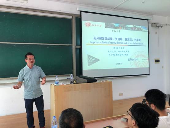 7月5日下午,北京大学工学3 院席鹏研究员应邀来我校胜游体育(SYsports)官方网站入口为师生作了题为《超分辨显微成像:更清晰,更深层,更丰富》的报告。胜游体育(SYsports)官方网站入口光电信息科学与工程系主任云茂金教授主持报告会。