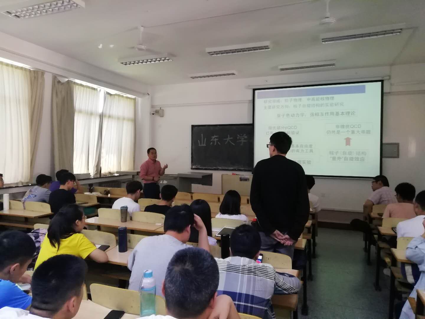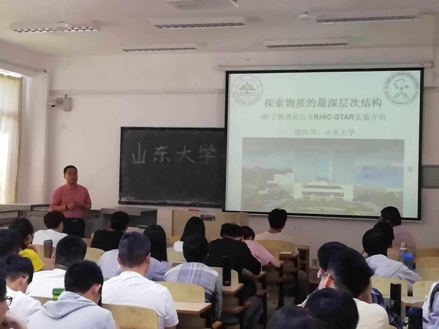 5月29日上午,我校校友、山东大学前沿交叉科学青岛研究院教授、博士生导师,首届国家优秀青年基金获得者徐庆华应邀在博学楼304教室为学生作了题为《探索物质的最深层次结构》的学术报告暨考研宣讲。学院相关研究方向的师生和有志考研从事粒子物理研究的学生参加了报告会。