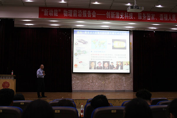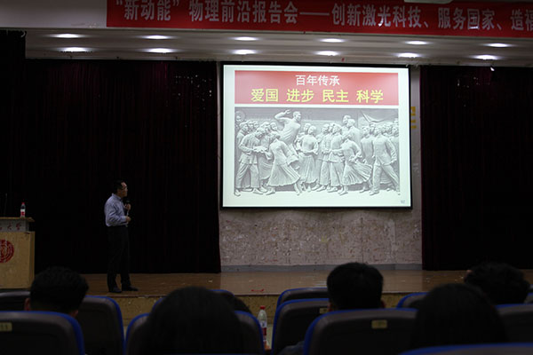 在报告中,邵建达首先介绍了中国科学院上海光学精密机械研究所在超强超短激光、激光惯性约束聚变、空间冷原子钟、空间激光通信及高功率激光相关材料与器件等研究领域的最新进展,然后介绍了中国科学院上海光机所研究生招生与培养情况,最后从中国科学院上海光机所的历史使命出发与青大学生探讨了中国当代青年的责任与担当。报告结束后,参会的本科生、研究生针对报告内容、研究生报考等问题积极提问,邵建达作了详细解答。