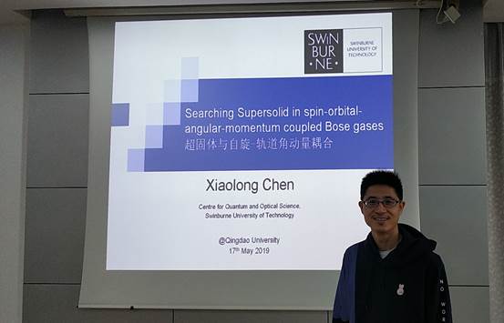 5月17日上午,澳大利亚斯威本科技大学陈小龙博士受邀来胜游体育(SYsports)官方网站入口为师生作了题为《Searching Supersolid in Spin - Orbital - Angular - Momentum Coupled Bose Gases》的学术报告。报告特聘教授邹鹏主持,学院理论物理计算方向的师生参加了报告会。