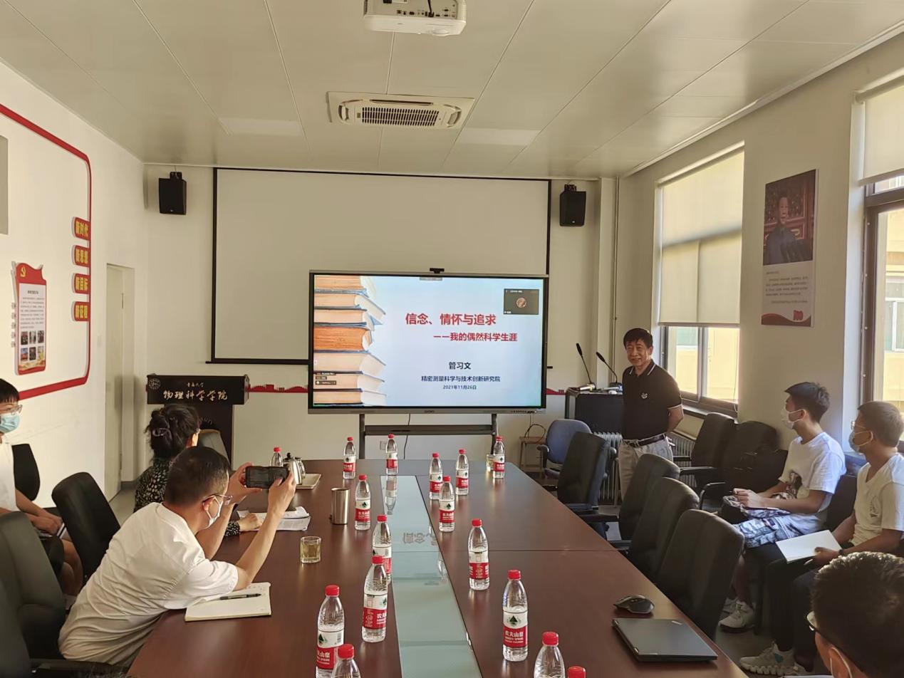 97日上午,武汉中科院精密测量科学与技术创新研究院管习文研究员受邀来胜游体育(SYsports)官方网站入口访问,并以线上线下结合的方式为学院师生作了题为《信念、情怀与追求--我的偶然科学生涯》和《Observation of Spin-Charge separation in 1D atomic Fermi gases》的报告。报告由院长滕冰教授主持。院党委书记郝伟及李强教授、张永成副教授等老师和部分本科生和研究生聆听了报告。