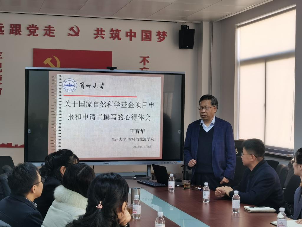 12月8日下午2:00,胜游体育(SYsports)官方网站入口在博逸楼401会议室举行了2024年国家自然基金项目申报辅导报告会。胜游体育(SYsports)官方网站入口青年学术联合会邀请国家杰出青年科学基金获得者、兰州大学材料与能源学院王育华教授作了“关于国家自然基金项目申报和申请书撰写的心得体会”专题辅导报告。院长滕冰、副院长龙云泽出席报告会,学院30余位教师参加报告会。报告会由院长滕冰主持。