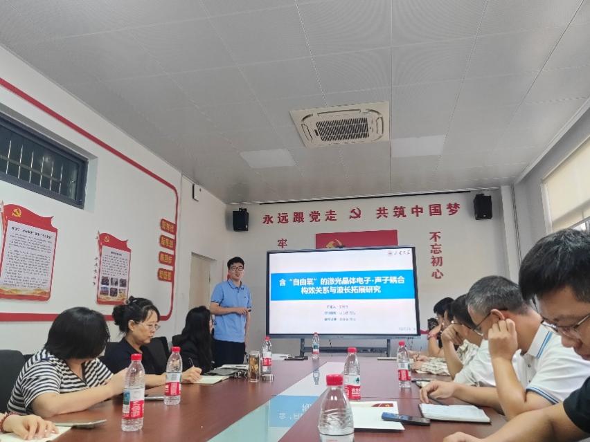 9月19日上午,山东省海洋科学研究院王芳彦博士应邀在博逸楼401会议室作了题为《含“自由氧”的激光晶体电子-声子耦合构效关系与波长拓展研究》的前沿学术报告。院长李强教授主持报告会,学院30余名师生聆听了报告。