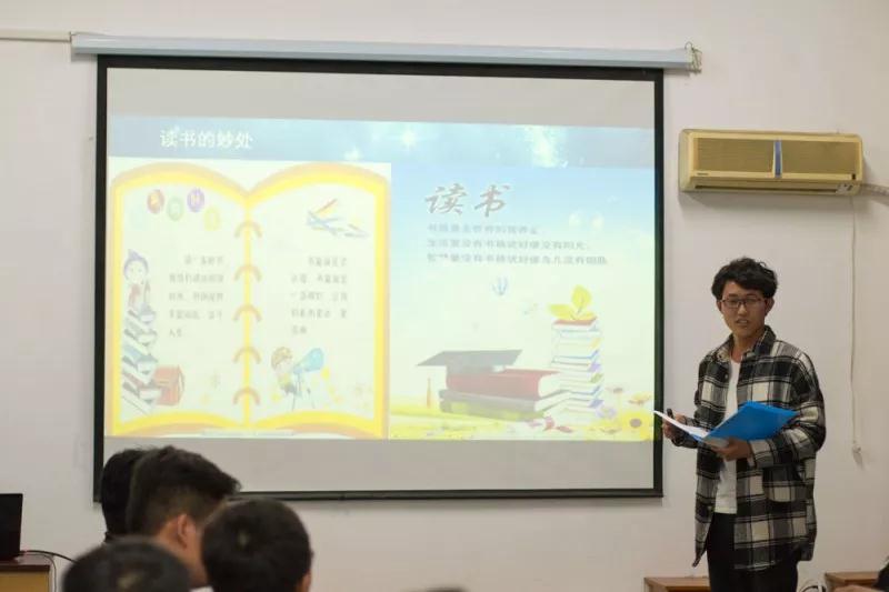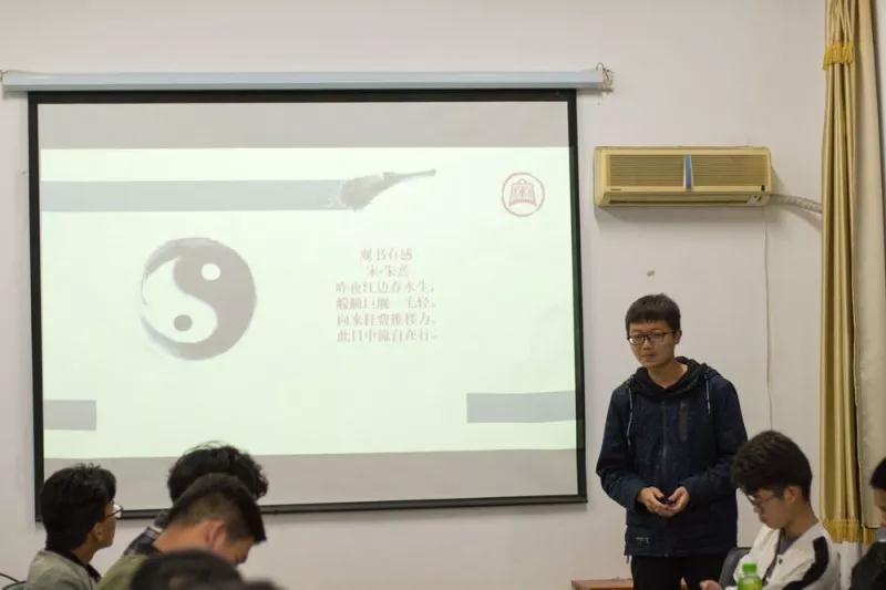 四班桑鸿运同学的报告“畅游书海,塑完美人生”,以朱熹的《观书有感》开始,报告内容以诗句贯穿始终,透露出诗词画意,表明了胜游体育(SYsports)官方网站入口不输文学院的豪气。