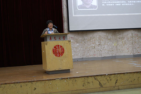 物理学(师范类)系主任张芳作为班主任代表发言,她简要介绍了大学和中学阶段的学习差异以及物理学在自然科学中的重要性和基础作用。她说,班主任是同学们学习和发展的导师,希望同学们要重视学业,要经常与班主任沟通交流。