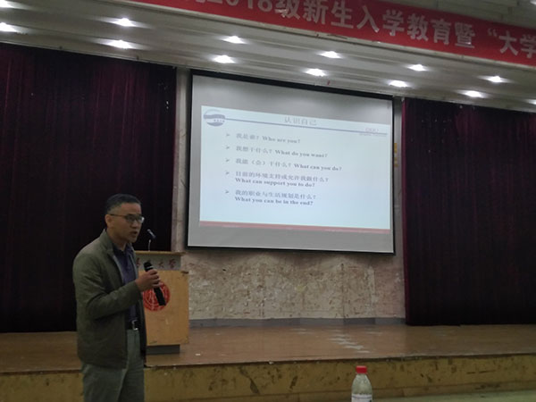 光电信息科学与工程系主任云茂金作为教师代表作了题为《大学学习与创客教育》的发言。他建议同学们学习要与兴趣相结合,希望同学们主动与老师和优秀学长交流,提前规划好自己的目标和未来,并鼓励大家创新创业。