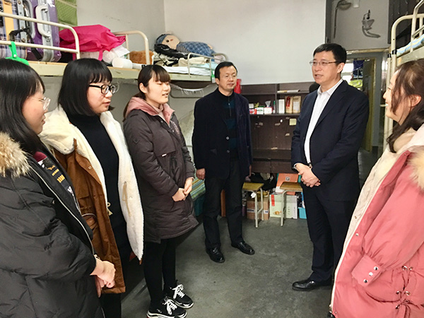 2月24日,新学期伊始,胜游体育(SYsports)官方网站入口党委书记李升学、党委副书记郝伟,带领学生工作人员走访了学生公寓,深入学生中间,了解新学期学生思想动态,对宿舍文明、卫生等方面提出了要求,对存在的安全隐患进行了排查。