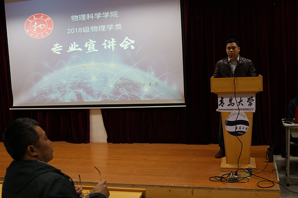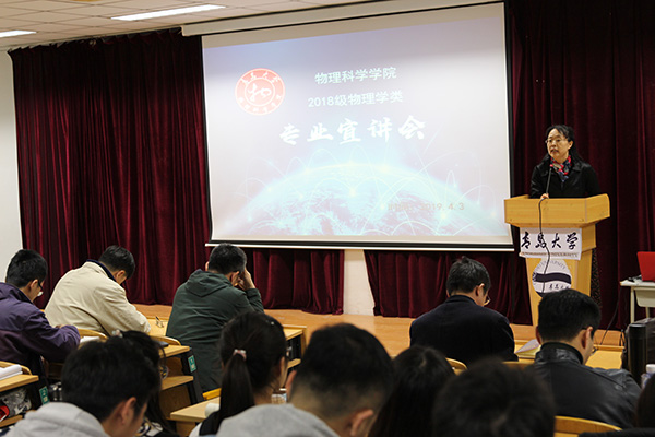 4月3日晚,胜游体育(SYsports)官方网站入口2018级物理学类专业宣讲会在金家岭校区图文中心三楼报告厅举行。学院院长滕冰、党委副书记郝伟、副院长龙云泽出席会议,各系主任及有关班主任(学业导师)、辅导员参加会议。会议由党委副书记郝伟主持。