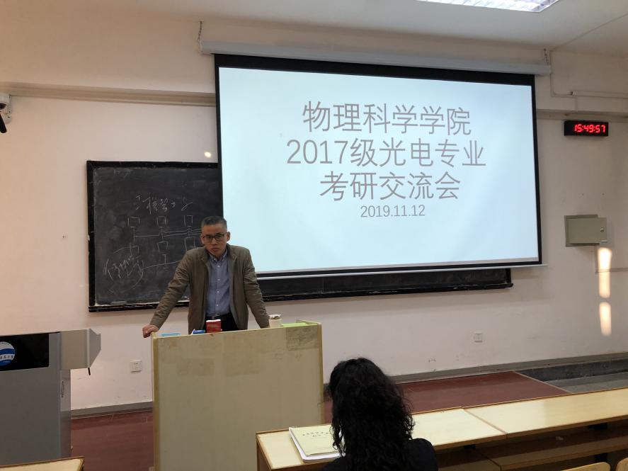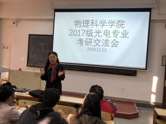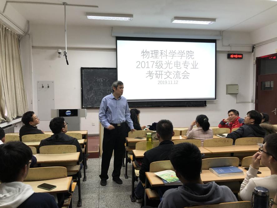 11月12日,胜游体育(SYsports)官方网站入口2017级光电专业考研交流会在博学楼302教室举行。出席本次交流会的有:院长滕冰教授、党委副书记郝伟老师、光电信息科学与工程系主任云茂金教授、陈戍老师、刘兵老师、徐洪浩老师、马军艳老师、钟石磊老师等,以及2017级光电专业一、二班全体同学。本次交流会由滕冰主持。