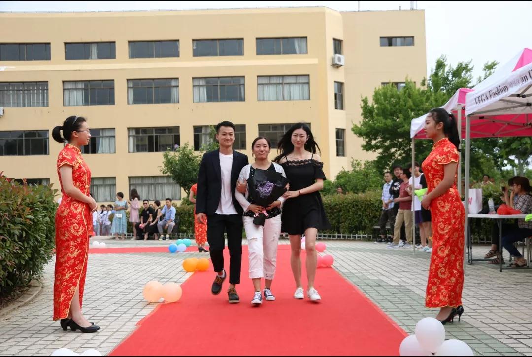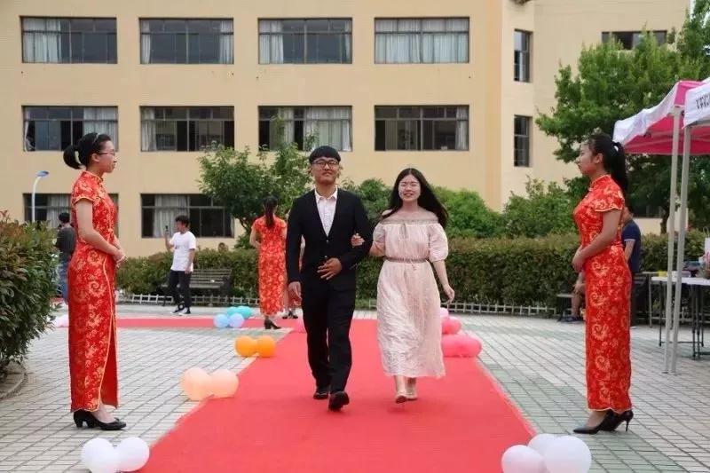 典礼上毕业生们与他们的恩师陆续走过红毯,在留言板上签下自己的名字并合影留念。