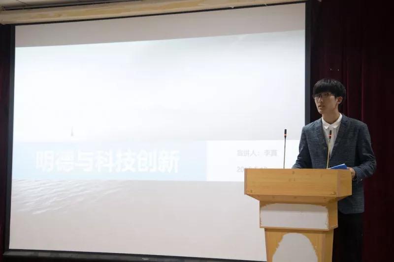 《孙子兵法》中说“凡战者,以正合,以奇胜”。那么在科技创新中大家应该怎么运用这个理论呢?2016级应用物理学二班潘昊然同学给出了她的答案。听完她的宣讲,大家了解了守正与出奇的关系。