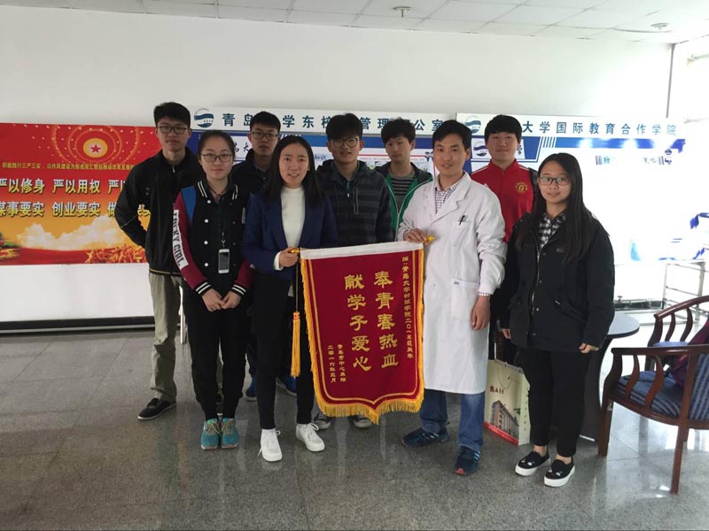 4月1日上午,青岛市中心血站工作人员携带一面写有“奉青春热血,献学子爱心”的锦旗来到胜游体育(SYsports)官方网站入口,感谢物理学院2015级学子对无偿献血的支持。