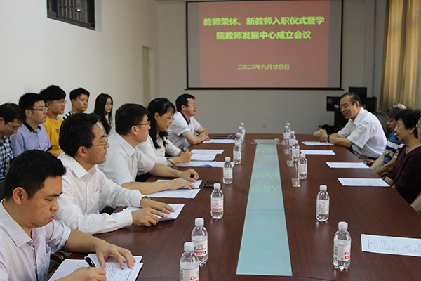 9月24日下午,学院在博逸楼401会议室举行2020年教师荣休、新教师入职仪式暨学院教师发展中心成立会议,这是学院在学校师德建设教育月组织的“弘扬高尚师德、潜心立德树人”的重要活动之一。院党委书记李升学、院长滕冰、党委副书记郝伟、副院长王乙潜和龙云泽,院长助理张永成,学院教师发展中心成员,党政办、相关系(中心)负责人和部分教师参加会议,会议由郝伟主持。