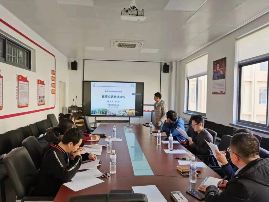 来自德国维尔茨堡大学、中国科技大学、兰州大学和哈尔滨工业大学等国内外高校的博士和博士后人员参加了面试。面试分为两个环节:一是个人简介和科研工作;二是讲授物理核心课程以及服务学院学科计划。