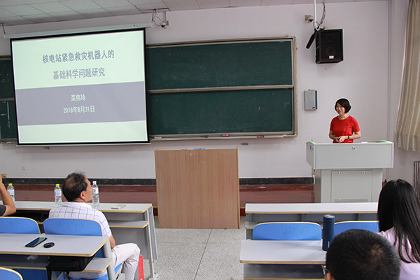 栾伟玲的报告分“青岛大学与我”、“我现在工作的单位——华东理工大学”、“核电站紧急救灾机器人抗失效防护”3个部分。栾伟玲首先以回忆为主线,通过展示班级照片、同学录以及讲述大学故事等带领大家走进了她的大学时代。随后,她从发展历史、学科和师生规模、人才队伍、科研基地、人才培养、国际荣誉等方面系统介绍了华东理工大学的基本情况。最后,栾伟玲重点介绍了核电站紧急救灾机器人抗失效防护的基本知识。发展核电是我国能源战略的既定政策,栾伟玲用一句“人类会犯意想不到的错误,自然界会发生超乎人类想象的灾害”引出了核环境作业机器人,并对研究核环境作业机器人过程中遇到的问题、难点等进行了讲解,从设计思路到材料研究再到理论模拟到最后的创新点,让大家看到了科研过程的艰辛以及科研工作人员的认真。