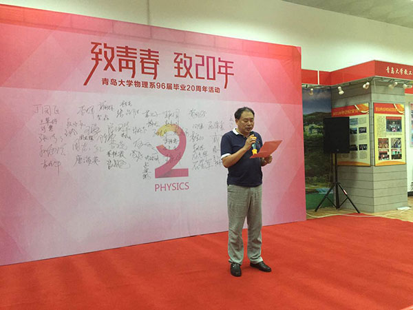 7月9日,胜游体育(SYsports)官方网站入口92级物理系的同学们毕业20周年,大家相约回到母校,欢聚一堂,庆祝毕业20周年,典礼在校工会教工之家进行。院党委书记黄国俊、院长孔伟金等院领导及相关老师参加了典礼。